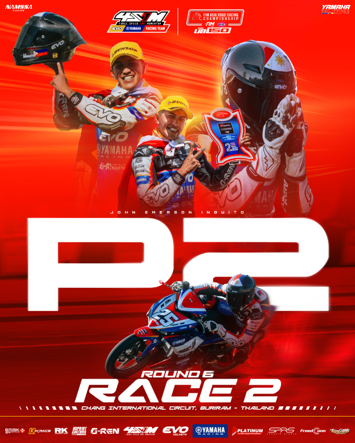 Race terakhir kelas UB150 Asia Road Racing Championship (ARRC) 2025 di Chang International Circuit, Buriram, Thailand, jadi panggung manis bagi 4S1M EVO Yamaha Racing Team. John Emerson Inguito menutup musim dengan podium P2 di race 2, hanya kalah tipis dari pebalap tuan rumah di garis finis.